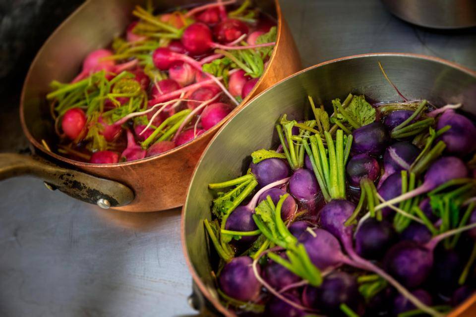 Didier Edon et Philippe Bertrand ont eu la chance de travailler une nouvelle fois avec des produits d'exception aux Hautes Roches. Pour cette soirée, la maison Terre Exotique - épicerie fine spécialiste des poivres du monde, et le maraîcher Eric Roy - fournisseur de mini-légumes des plus beaux restaurants gastronomiques français, ont mis à disposition leurs meilleurs produits.