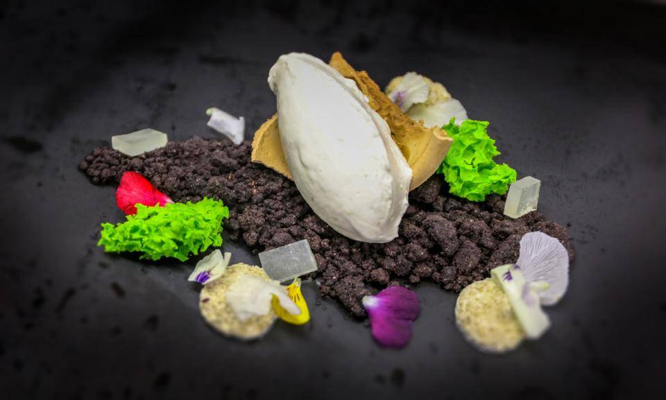 Côté sucré : Meringue, fenouil et celtuce au poivre de Timut, Poudre de Cacao Extra Brute, Zéphyr™ & yuzu / Poivre en trompe l'œil, Alto el Sol & Baies des Bataks / Pistole mini carottes orange, Zéphyr™ / Candi Betterave, Zéphyr™ & Poivre long rouge.