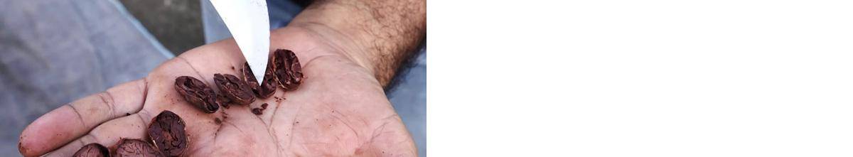 "Met het verstrijken van de dagen zullen de bonen beginnen drogen en de nerven gaan zich meer spreiden zodat de boon zijn uiteindelijke niervormige gedaante aan neemt die we nodig hebben voor cacao."