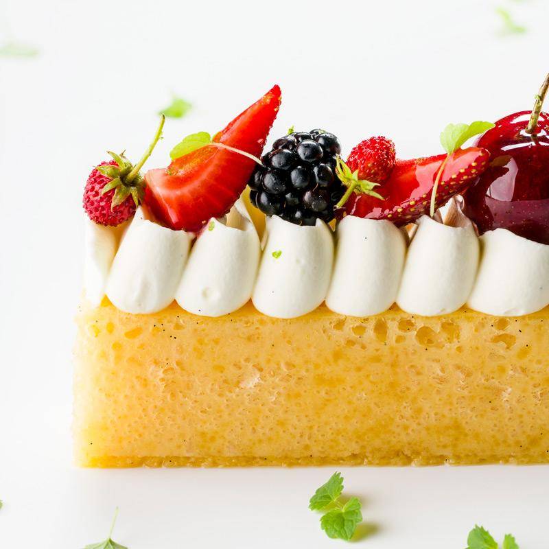 - Классическая ромовая баба, ароматизированная ромовым сиропом, фруктами, специями и свежими красными фруктами.