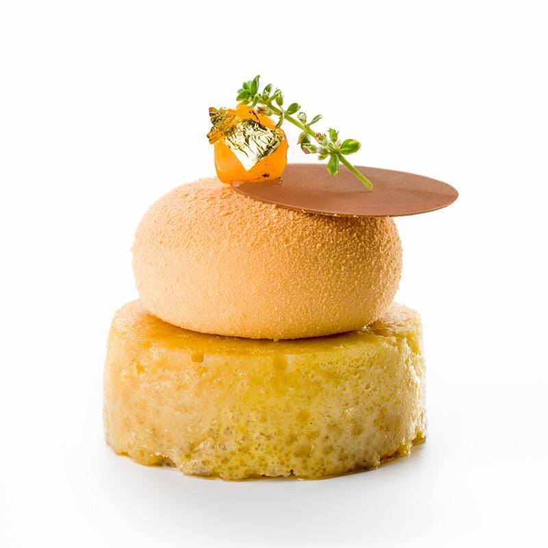- Безалкогольная баба, ароматизированная чаем и абрикосовым пюре с абрикосовым и имбирным желе.